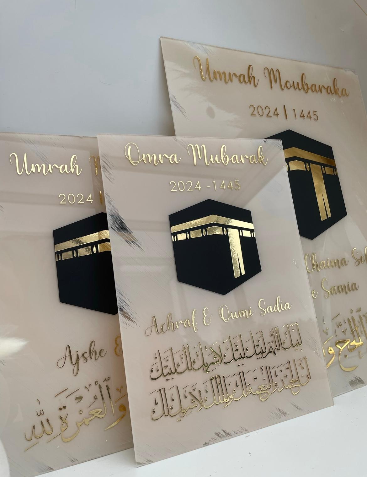 Découvrez nos panneaux de bienvenue en plexiglass et toiles peintes à la main, ornés de calligraphie arabe.